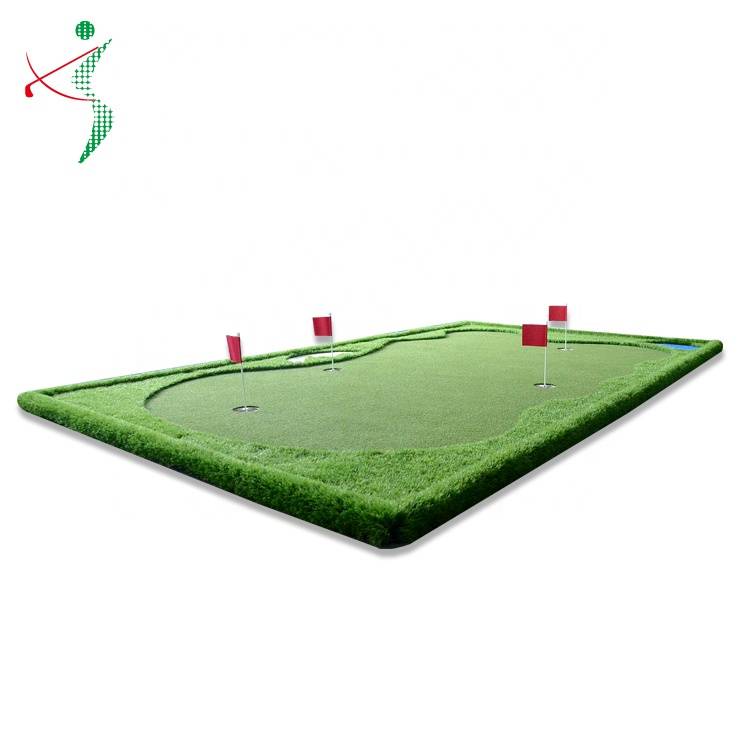 | Features | Two-layer portable custom golf putting green: 1. portable artifical golf putting green 2. rough grass is bi-color 40mm grass 3. central putting turf is 12mm grass 4. Central 10mm base + surrounded 30mm base. |