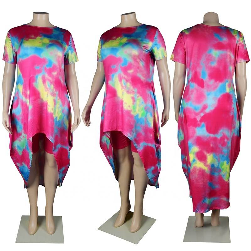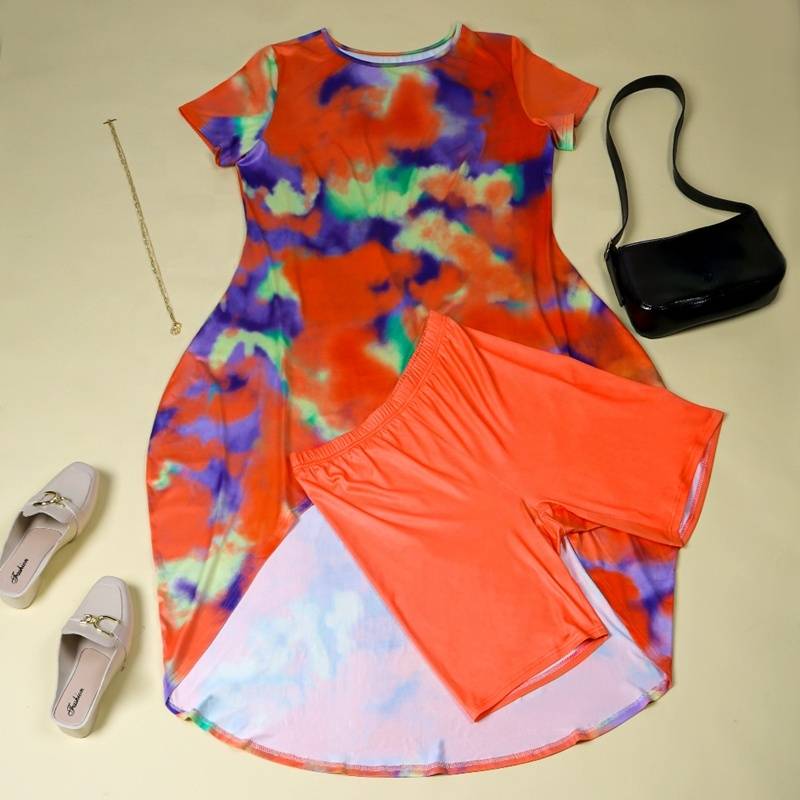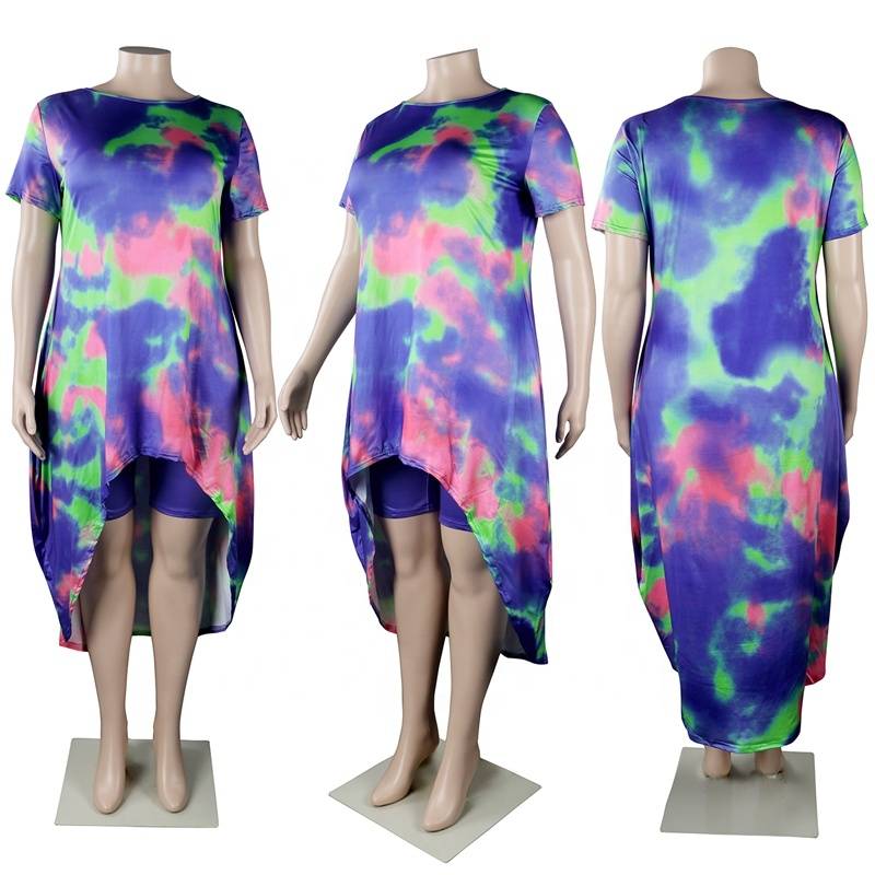 | Product Name | 2021 Sexy Women Summer Clothes Tie Dye Plus Size Two Piece Shorts And Shirt Casual Dress |