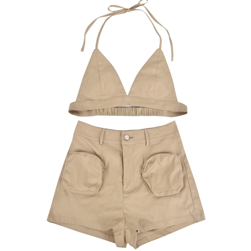 Boomlook LCST97 Summer Clothes For Women 2023 Streetwear Halter Crop Top Sports Bra And Shorts Set Women