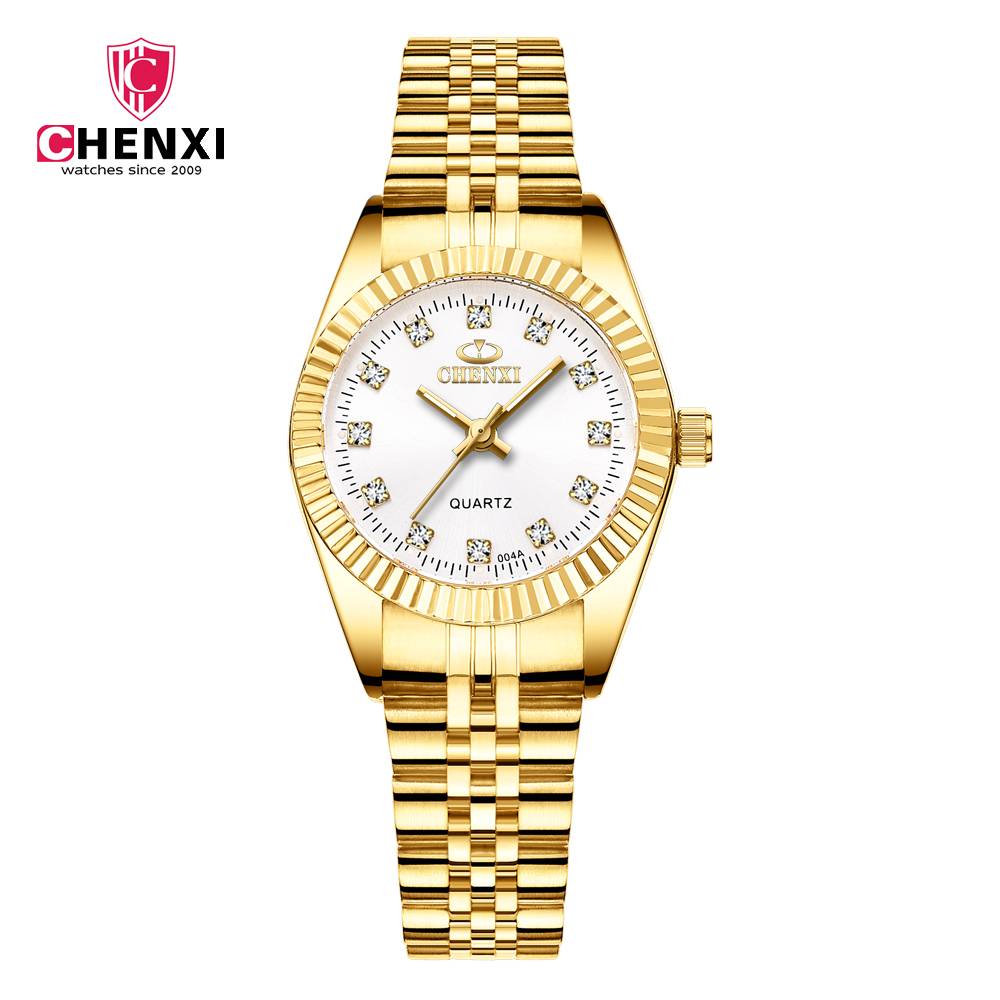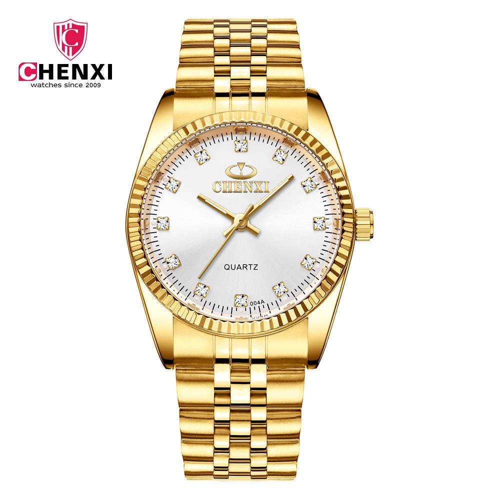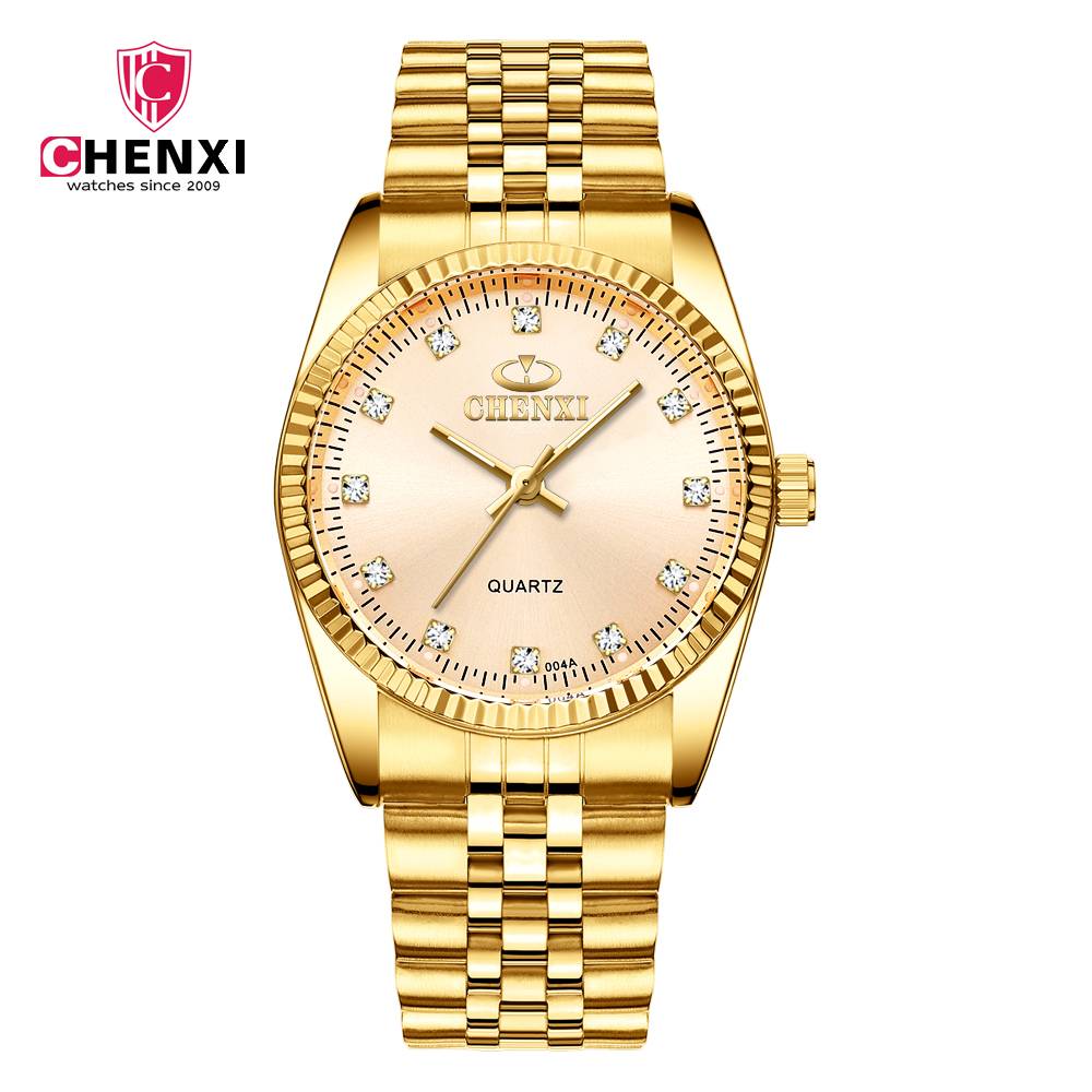 Chenxi 004A Gift Diamond Silver Gold Steel Japan Movt Dress Wristwacthes Stainless Steel For Men Women Lovers