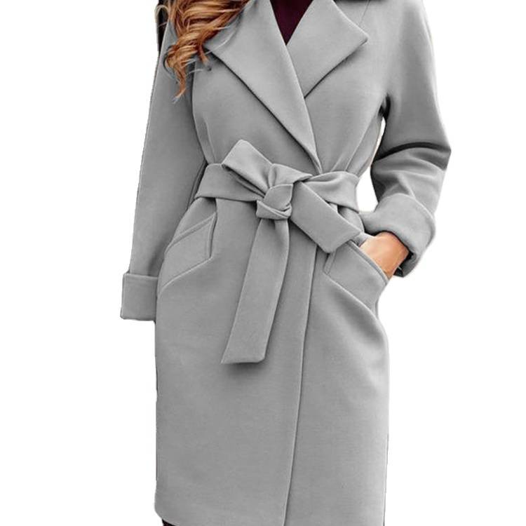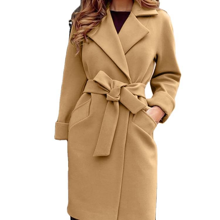 Fashion wholesale ladies wool plus size design long jackets coats with tie for women casual jacket oversize coats