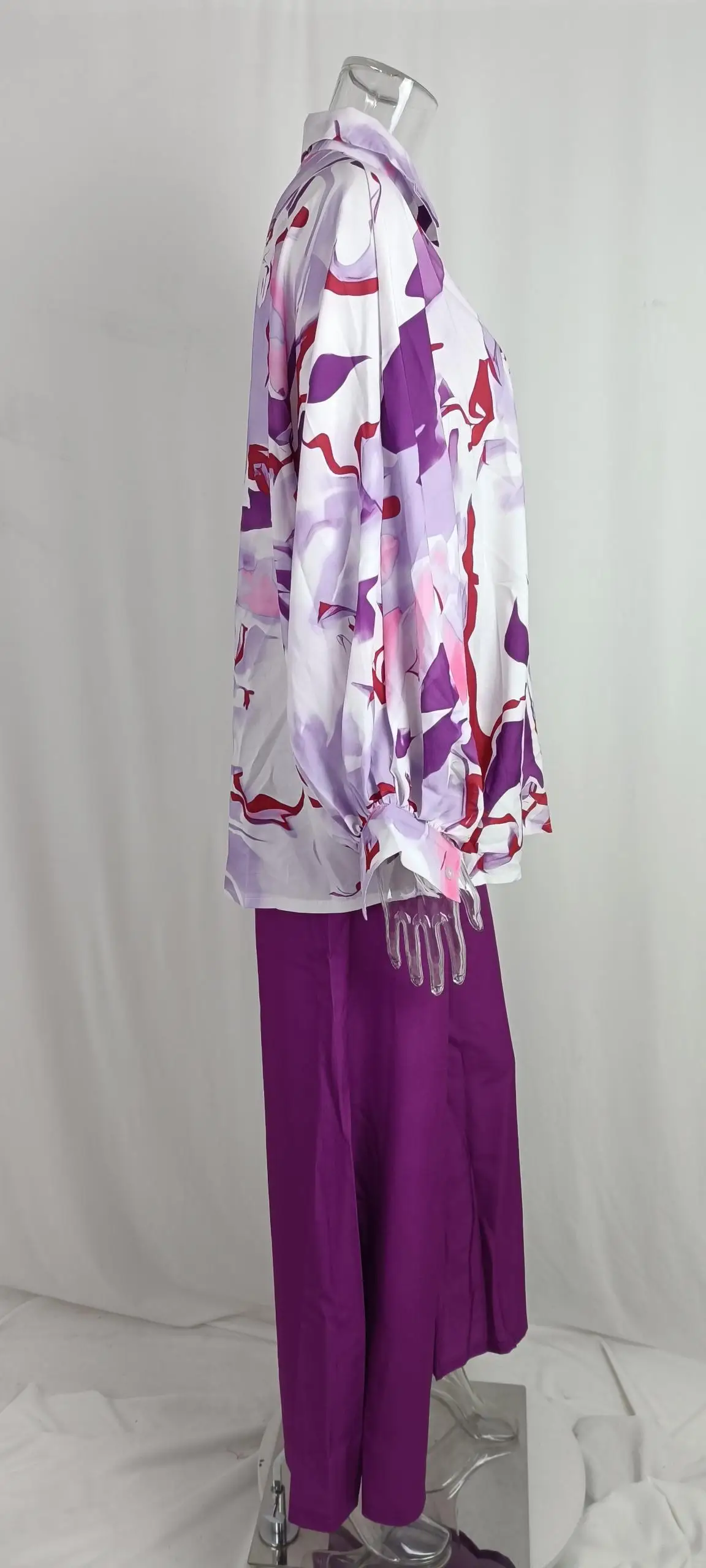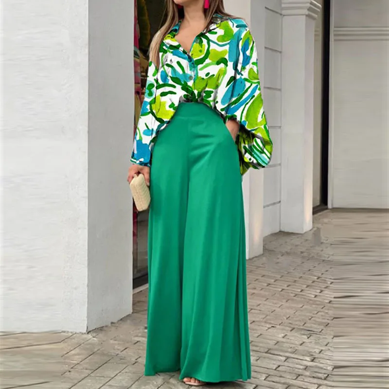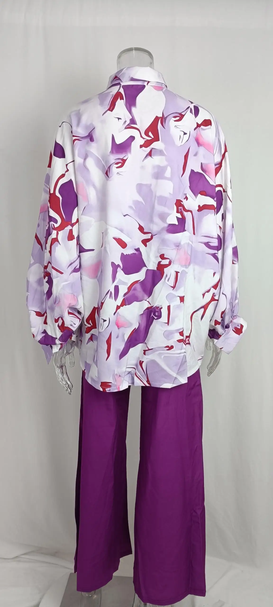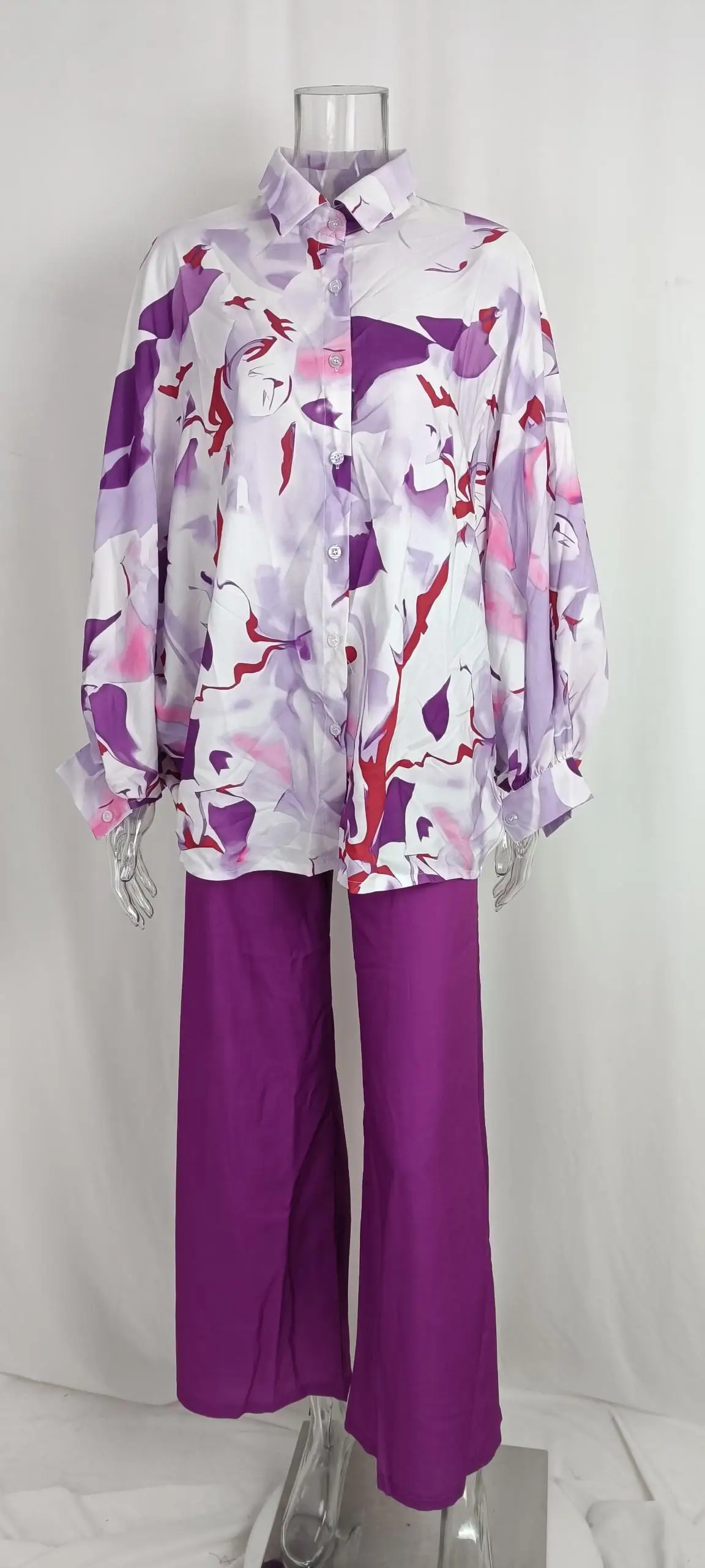 Fashion Woman Two Piece Pants Set Casual Loose Trousers And Print Long Sleeve Cardigan Single Breasted Shirt For Women’s Sets