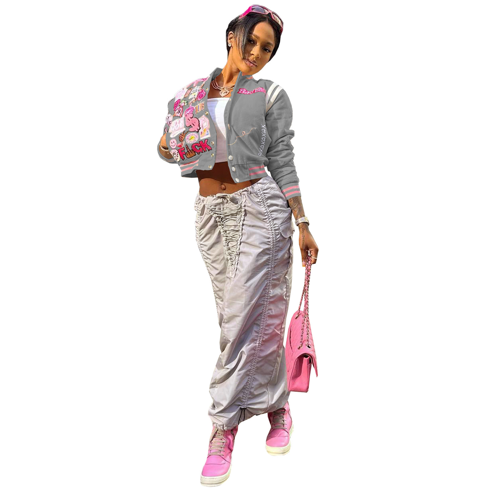 Just Dropped Fashion Baseball Jacket Women Print Pink Coat Varsity Jacket