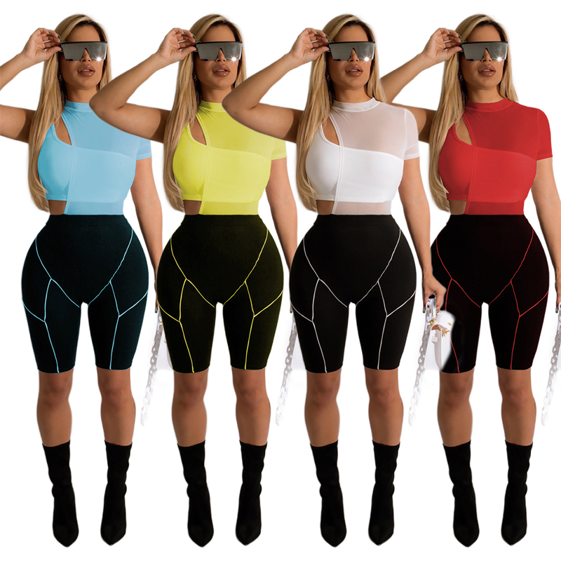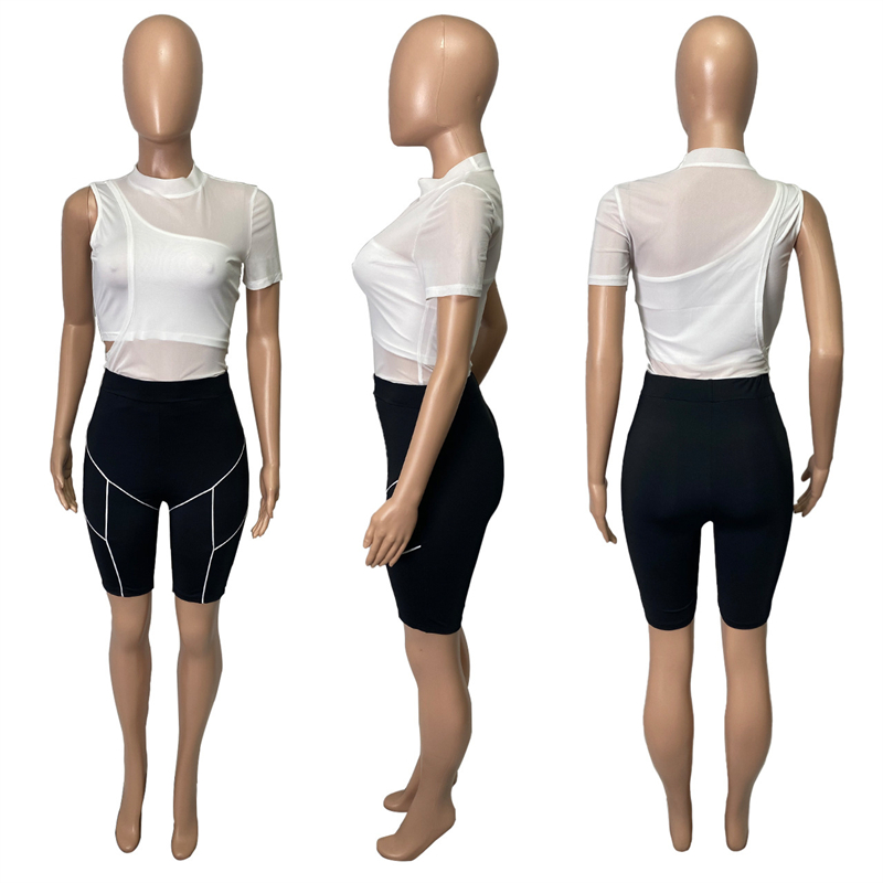 lady plus size sexy casual bralette mesh top t shirt and shorts 3 piece set women outfits clothes clothing 2022 summer for women