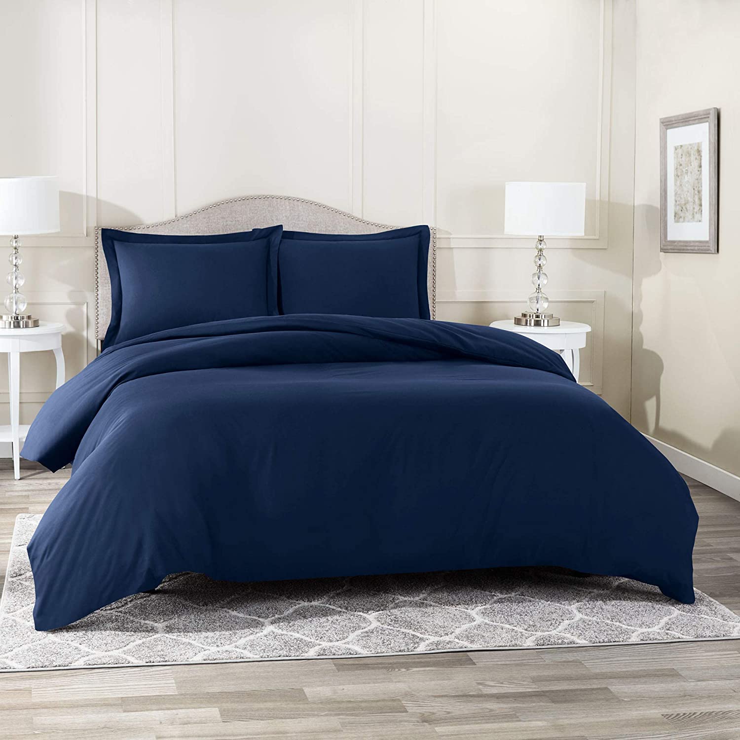 Navy Bedding Duvet Cover 3pcs Set Soft Double Brushed Microfiber Comforter Cover with Button Closure and 2 Pillow Shams
