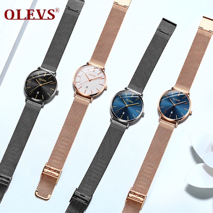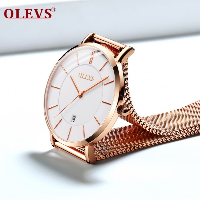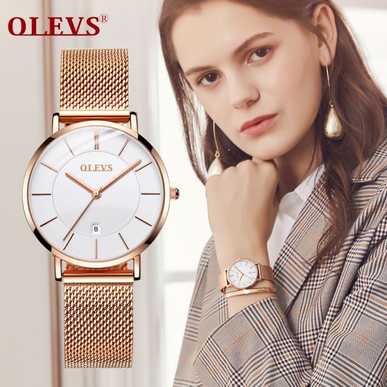 OLEVS 5869 elegant rose gold womens quartz watch clear crystals big dial date display Simple Casual wrist watch