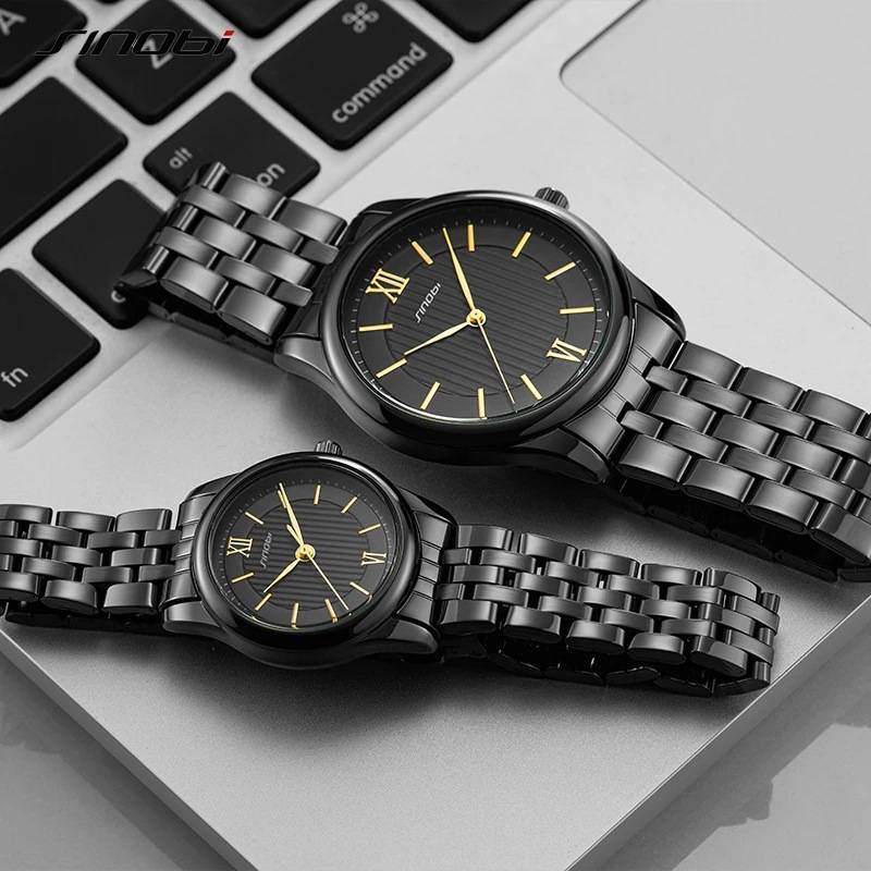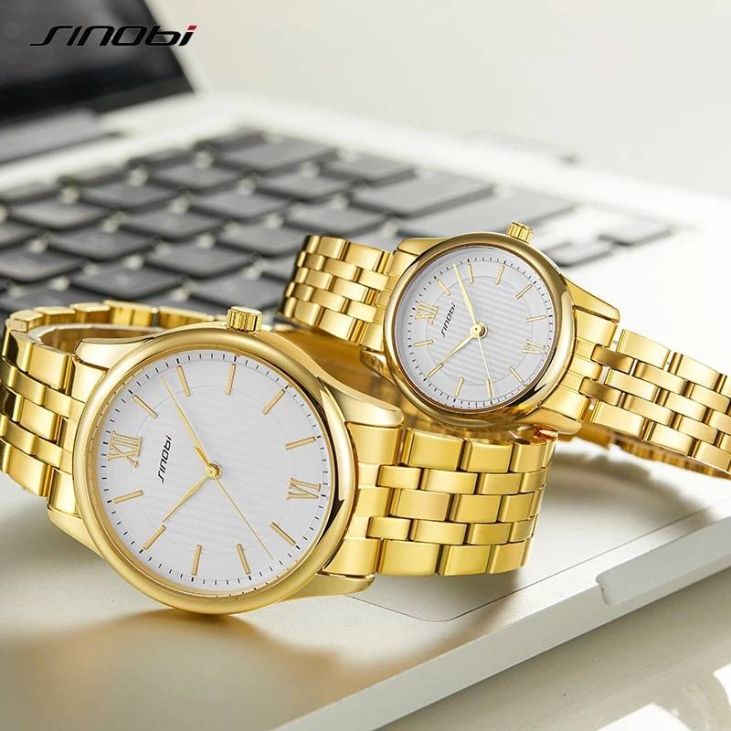 SINOBI Couple Watches For Lovers Stainless Steel Watch Sweet Anniversary Gift Pair Wristwatch Quartz Watch Custom Logo S9832G/L