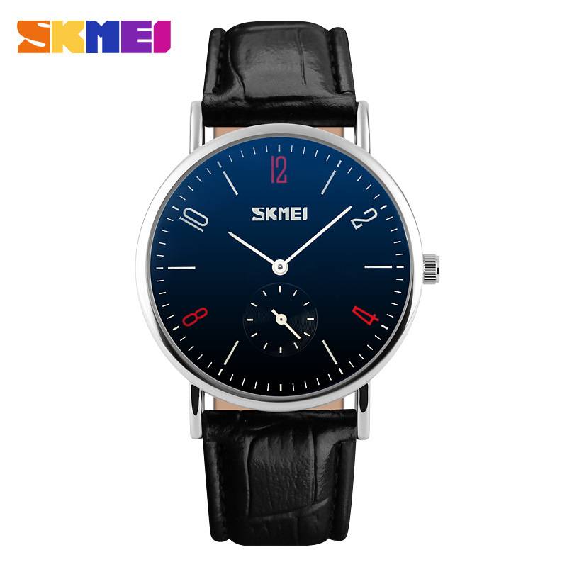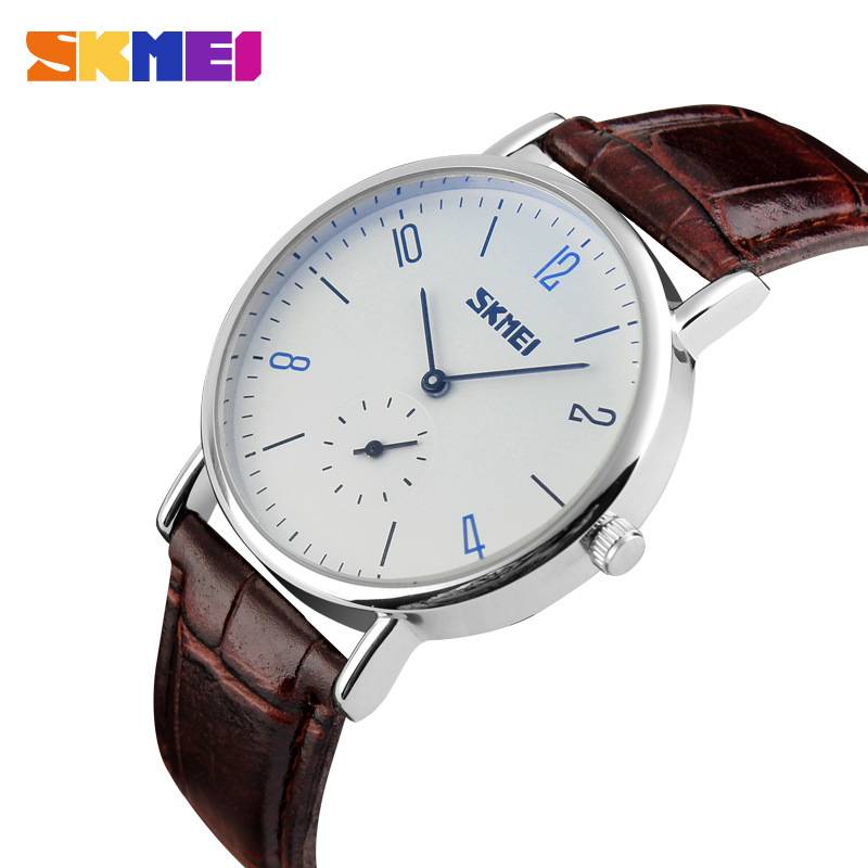SKMEI 9120 Casual Minimalist Leather Band Analog Quartz Lovers Wristwatch Elegant Couple Watches