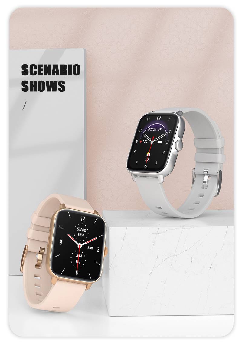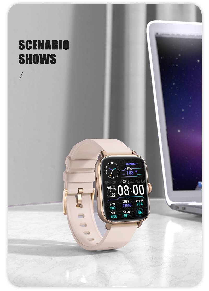 BT call, 1.7-inch large screen display, full-screen touch, vector font, heart rate measurement, Exercise record (step counting,distance, calorie calculation), exercise mode, message push, information storage, sleep monitoring, stopwatch, camera control, music playback, full font language