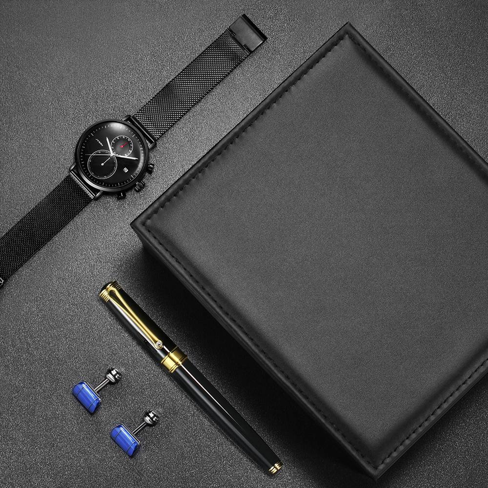 Wholesale exquisite quality birthday father gift business gift cufflinks fountain pen suit quartz men’s watches set