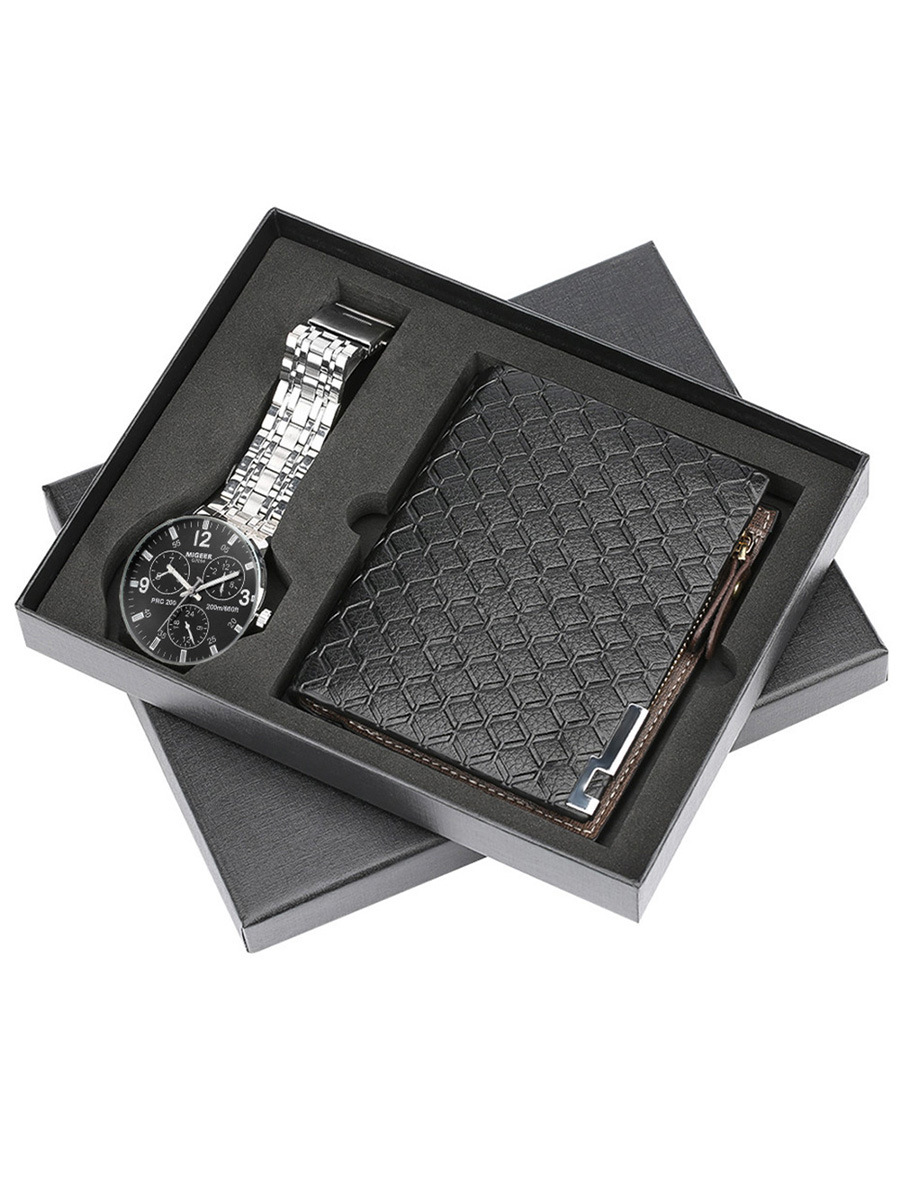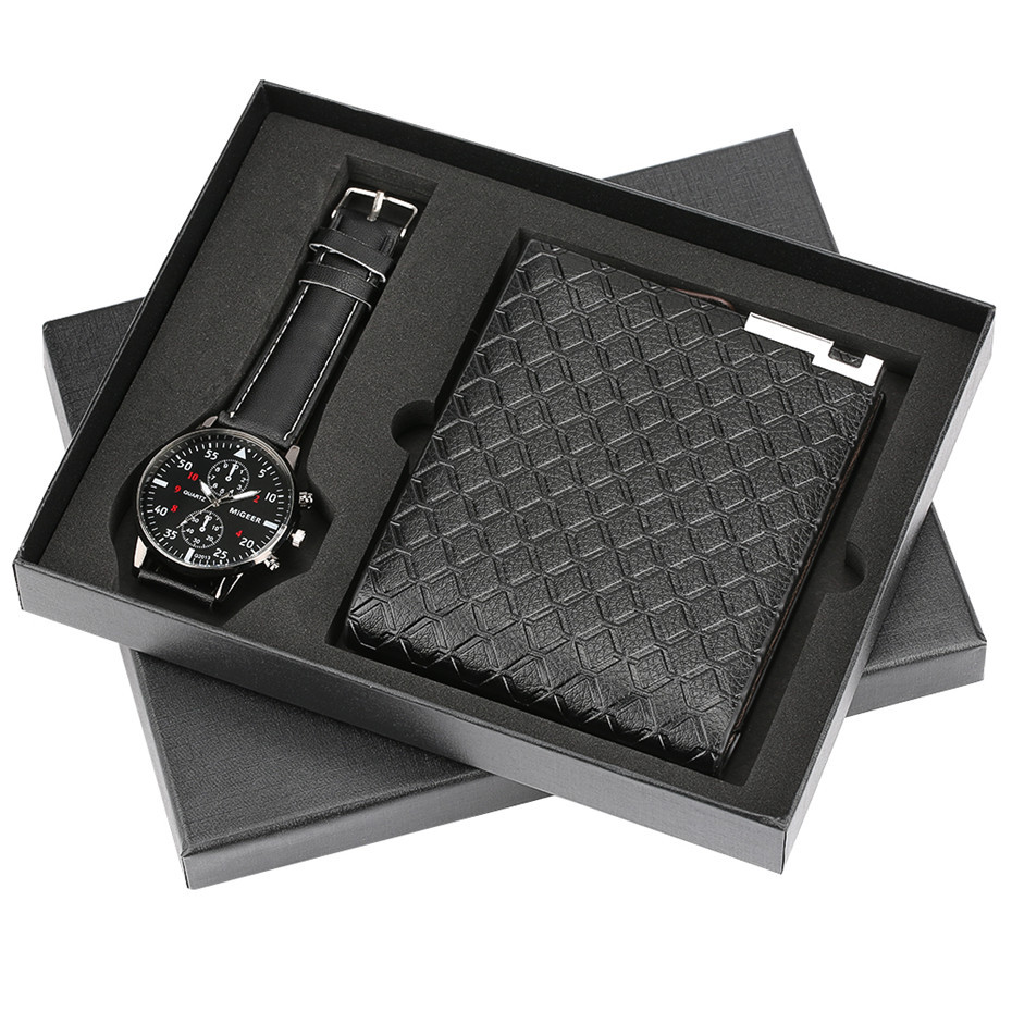 X400 new year set gift for men gift set branded private label men watch sets leather band exquisite packaging watch wallet